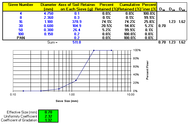 effective size; (d) the uniformity coefficient, Cu; and (e)