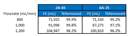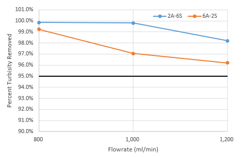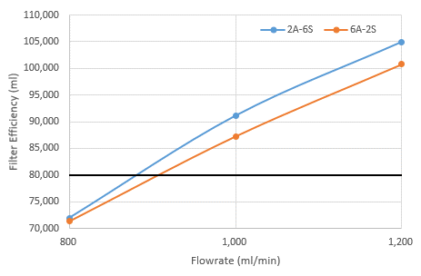 medium. The flowrate through the filter is 1,300 ml/min, the diameter of the