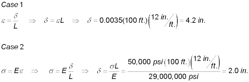 - Determine the maximum elongation in a 100-foot steel cable if the maximum
