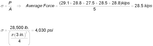 3 in. x 6 in. cylinders where the ultimate loads were 29,100 lb., 28,800