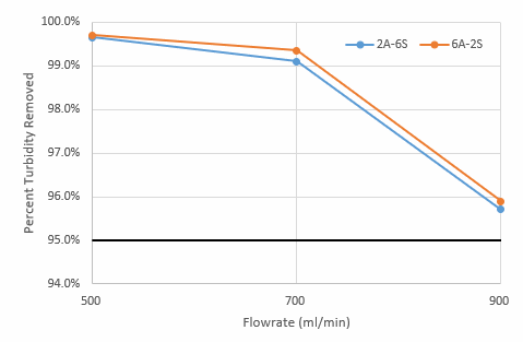 medium. The flowrate through the filter is 1,300 ml/min, the diameter of the