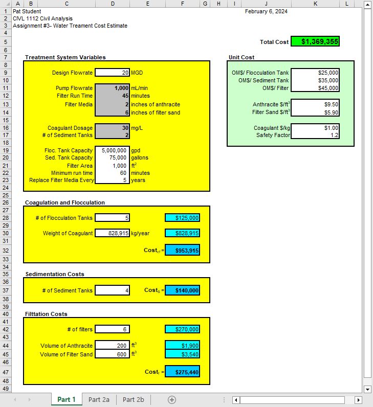 Part 3: Use your cost spreadsheet developed in
