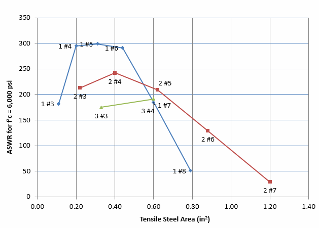 cost-adjusted SWR as a function of the tensile reinforcement As.