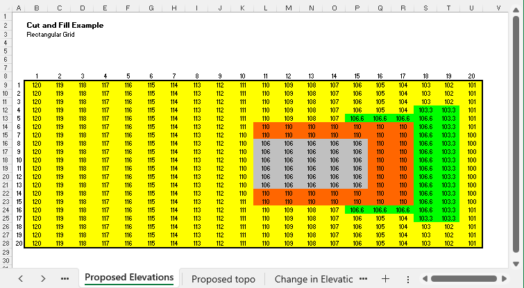 Once you have entered the original and the proposed elevations at the grid