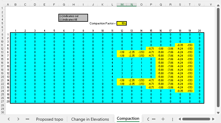 compaction. Once the change-in-elevations are computed, adjust the fill values