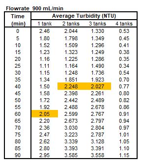 Flowrate = 900 ml/min Coagulant dosage = 60 mg/l Filters:
