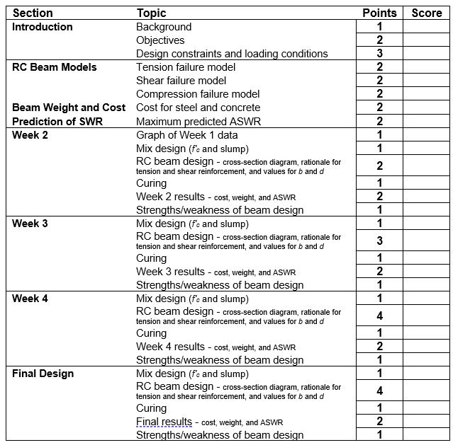 CIVL 1112 - Reinforced Concrete Beam Content Evaluation Criteria | |||