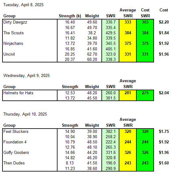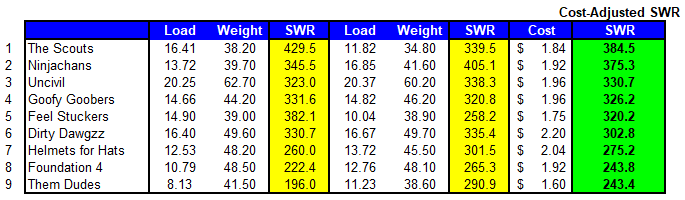 These ASWR values are final and reflect adjustments for cost exceeding $2.