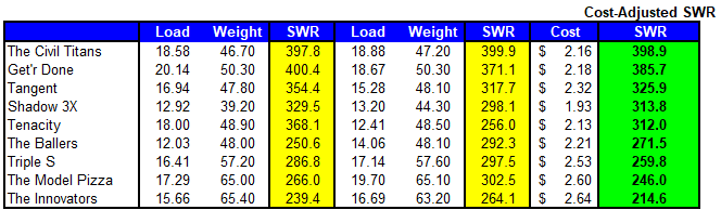 These ASWR values are final and reflect adjustments for cost exceeding $2.25.