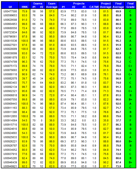 Grades are listed by your University ID Number.